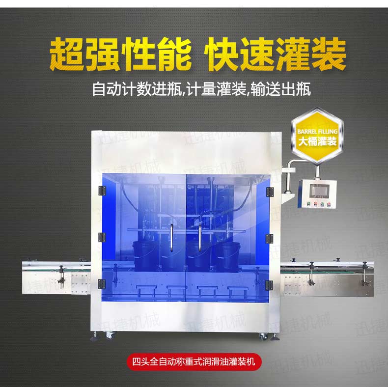 機(jī)油灌裝機(jī)適用于對(duì)4kg-25kg汽車(chē)用品類(lèi)產(chǎn)品:潤(rùn)滑油、防凍液、車(chē)用尿素等液體灌裝。自動(dòng)完成計(jì)數(shù)進(jìn)瓶、計(jì)重量灌裝、輸送出瓶等一系列操作。 特別適用于潤(rùn)滑油、水劑、食用油的定量灌裝,是食品,醫(yī)藥,化妝品以及精細(xì)化工等行業(yè)的理想灌裝機(jī)。本機(jī)采用可編程控制器(PLC)、高速工控組態(tài)軟件進(jìn)行實(shí)時(shí)監(jiān)控的控制,使用調(diào)節(jié)方便。整機(jī)按GMP標(biāo)準(zhǔn)要求制作,各管路連接采用快裝方式,拆卸清洗方便,與物料接觸部位及外露部位均采用不銹鋼制造。整機(jī)安全、環(huán)保、安全、美觀、能適應(yīng)各種不同環(huán)境工作。